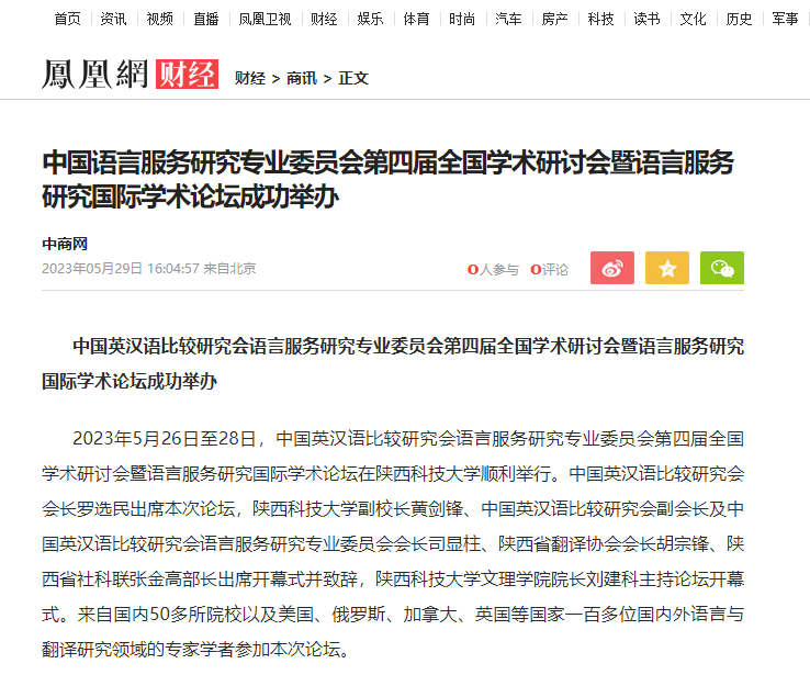 凤凰网:中国语言服务研究专业委员会第四届全国学术研讨会暨语言服务研究国际学术论坛成功举办