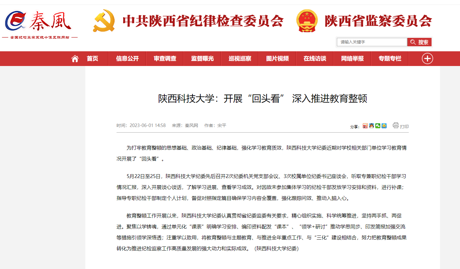 近日,秦风网报道德赢官网纪检干部队伍教育整顿工作。