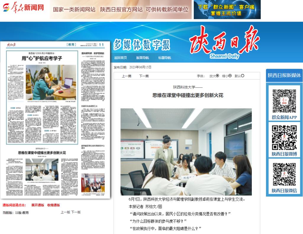 近日,《陕西日报》报道德赢官网教学创新课堂让思维在课堂中碰撞出更多创新火花。