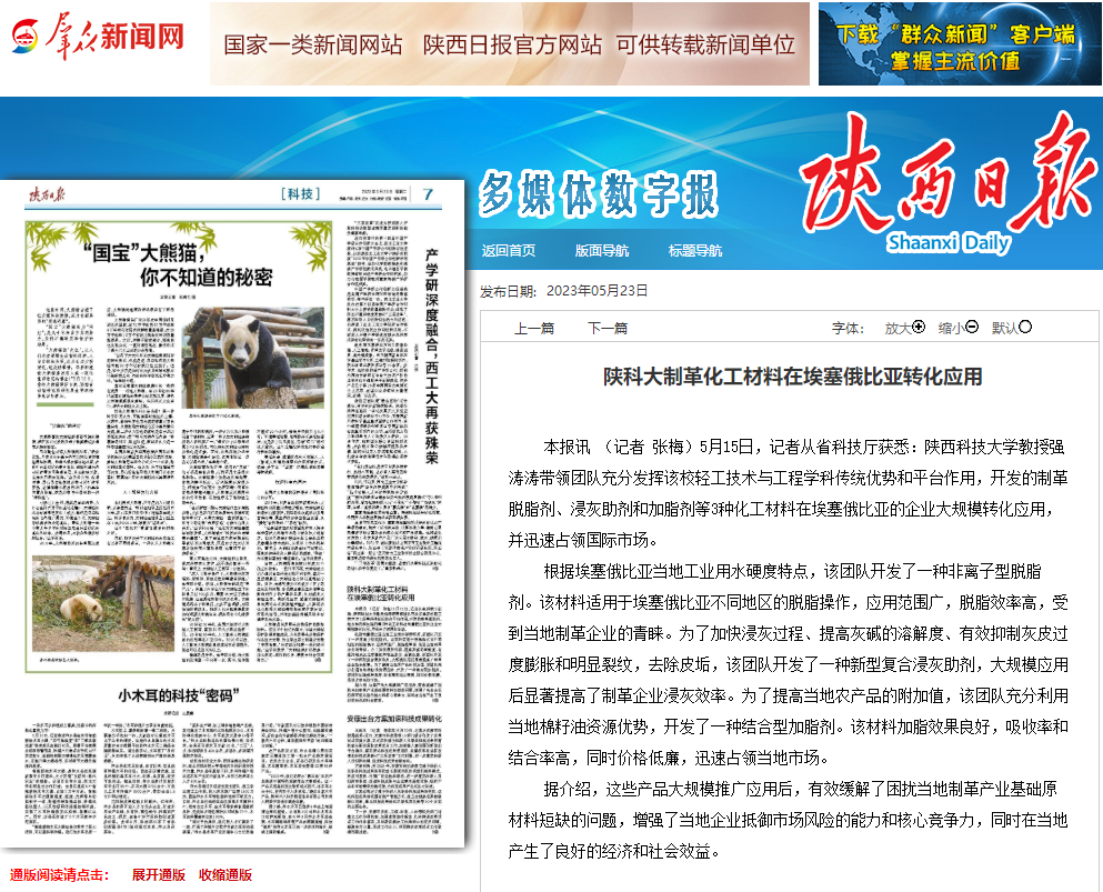 陕西省科技厅官网:陕西日报:陕科大制革化工材料在埃塞俄比亚转化应用