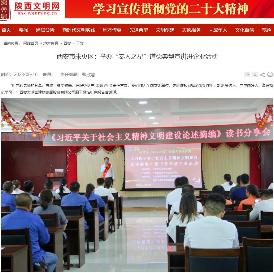西安文明网:未央区举办"秦人之星"道德典型宣讲进企业活动