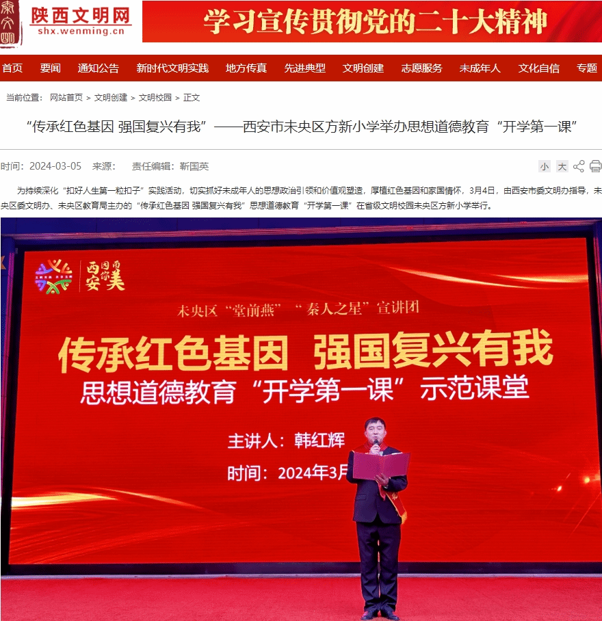 《西安日报》:2024思想道德教育“开学第一课”活动在全市各级文明校园持续开展