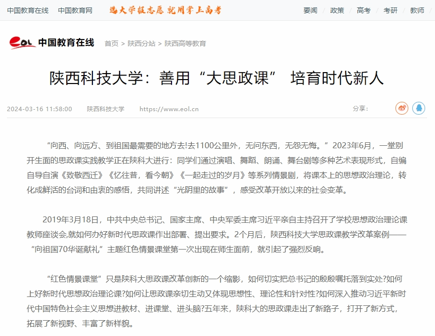 陕西省教育厅官网:德赢官网Vwin:善用“大思政课” 培育时代新人