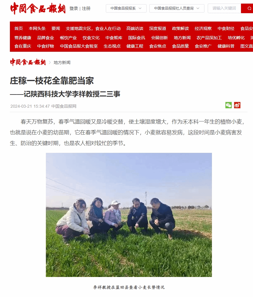 中国食品报网:庄稼一枝花全靠肥当家——记德赢官网Vwin李祥教授二三事