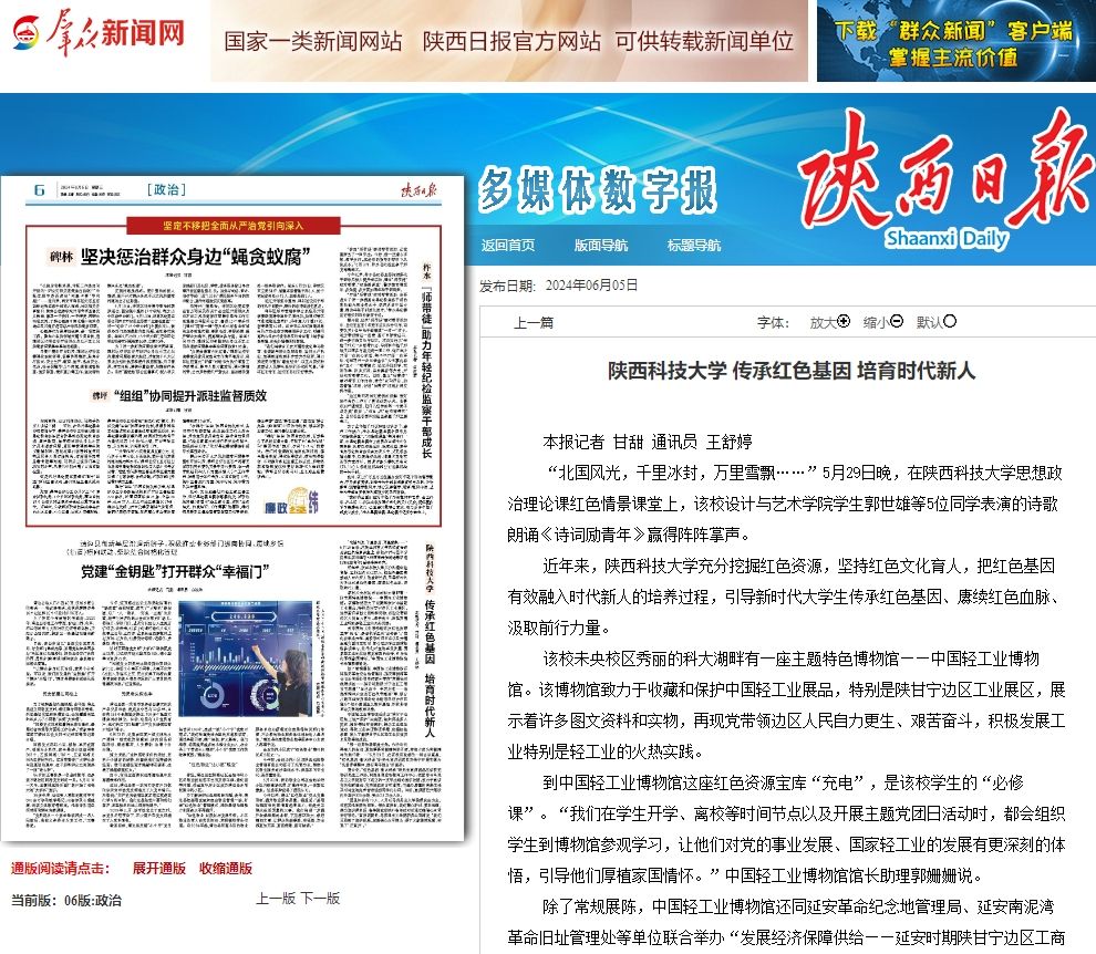 近日,《陕西日报》专题报道德赢官网传承红色基因,培育时代新人。