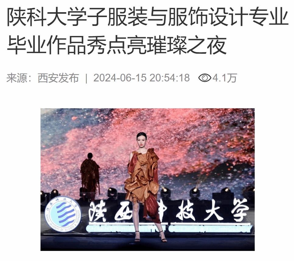 群众新闻网:陕科大学子服装与服饰设计专业毕业作品秀点亮璀璨之夜
