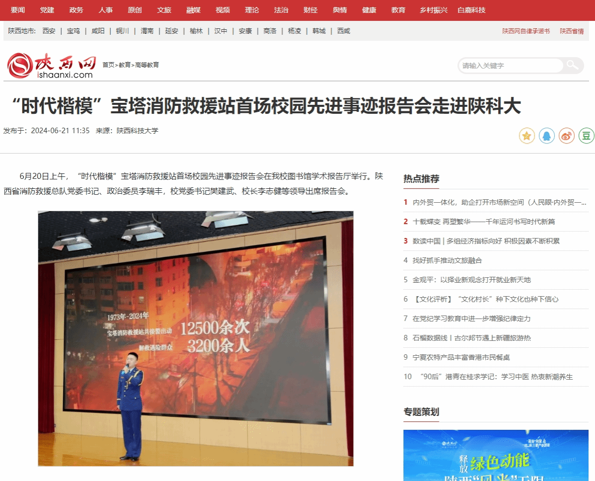 群众新闻网:“时代楷模”宝塔消防救援站首场校园先进事迹报告会走进陕科大