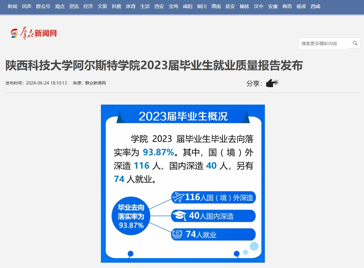 近日,群众新闻网、西安发布、秦闻报道德赢官网Vwin阿尔斯特学院2023届毕业生就业质量报告发布。