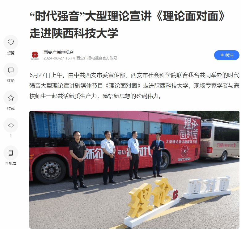 西安广播电视台官方微博:“时代强音”大型理论宣讲《理论面对面》走进德赢官网Vwin