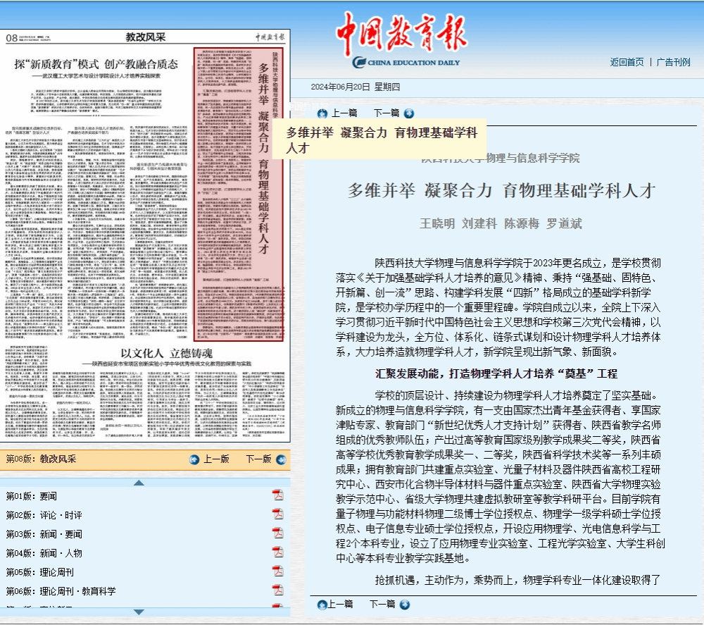 《中国教育报》:多维并举 凝聚合力 育物理基础学科人才
