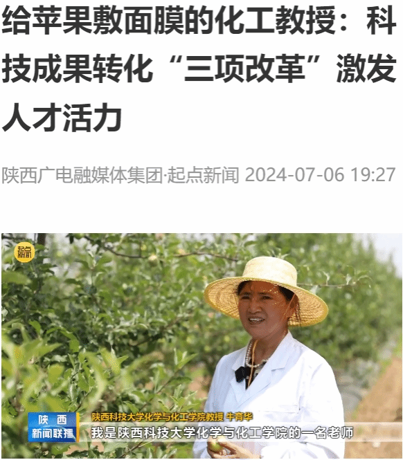 《陕西新闻联播》:给苹果敷面膜的化工教授:科技成果转化“三项改革”激发人才活力
