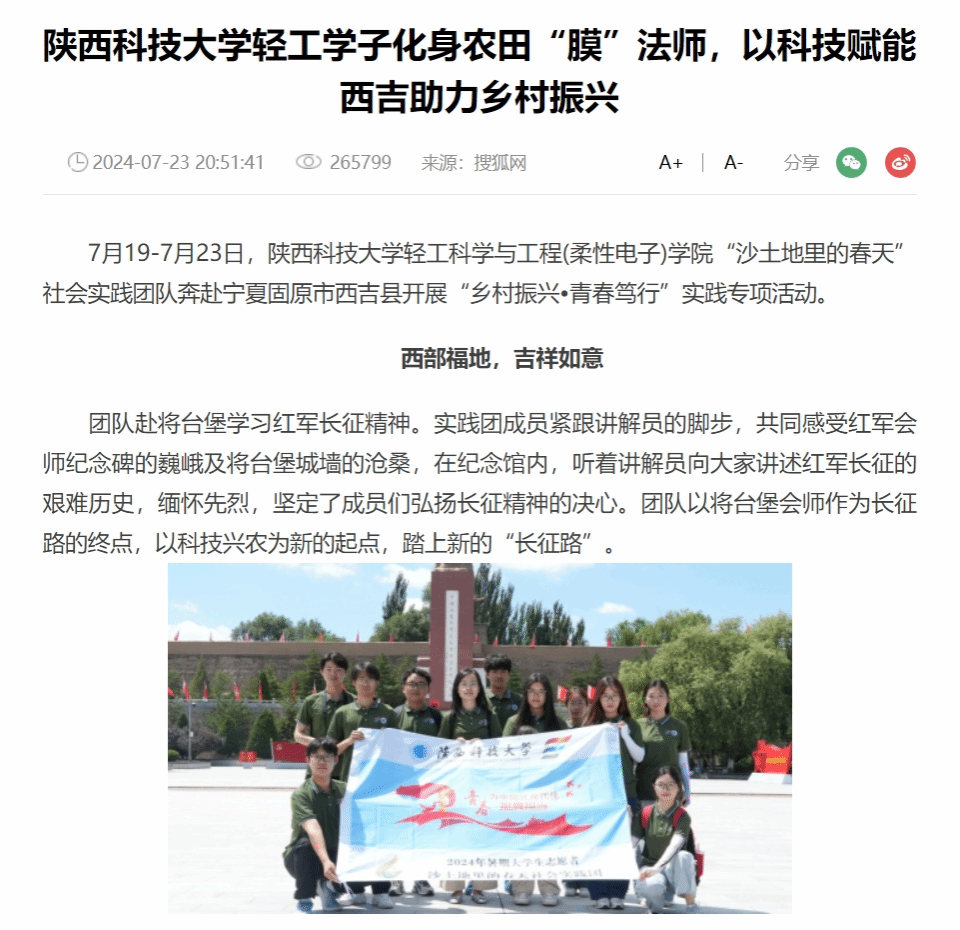 近日,《中华网》《中国大学生在线》《陕西青年网》报道德赢官网学子化身农田“膜”法师,以科技赋能西吉助力乡村振兴。