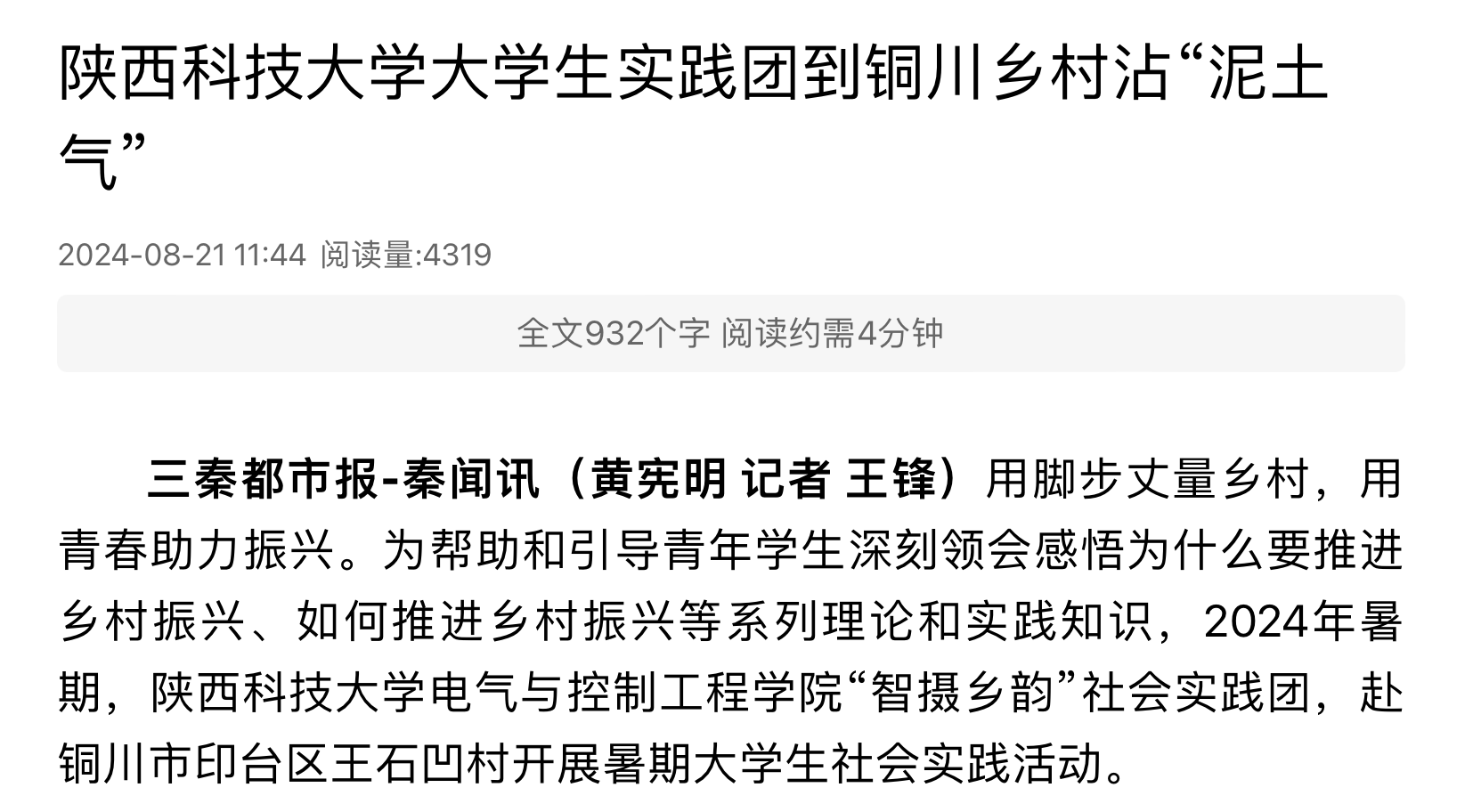近日,《三秦都市报》《中华网》报道德赢官网大学生实践团到铜川乡村沾“泥土气”。
