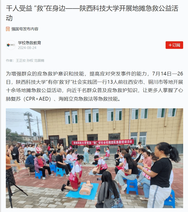 近日,“学校急救教育”学习强国号报道德赢官网开展地摊急救公益活动。