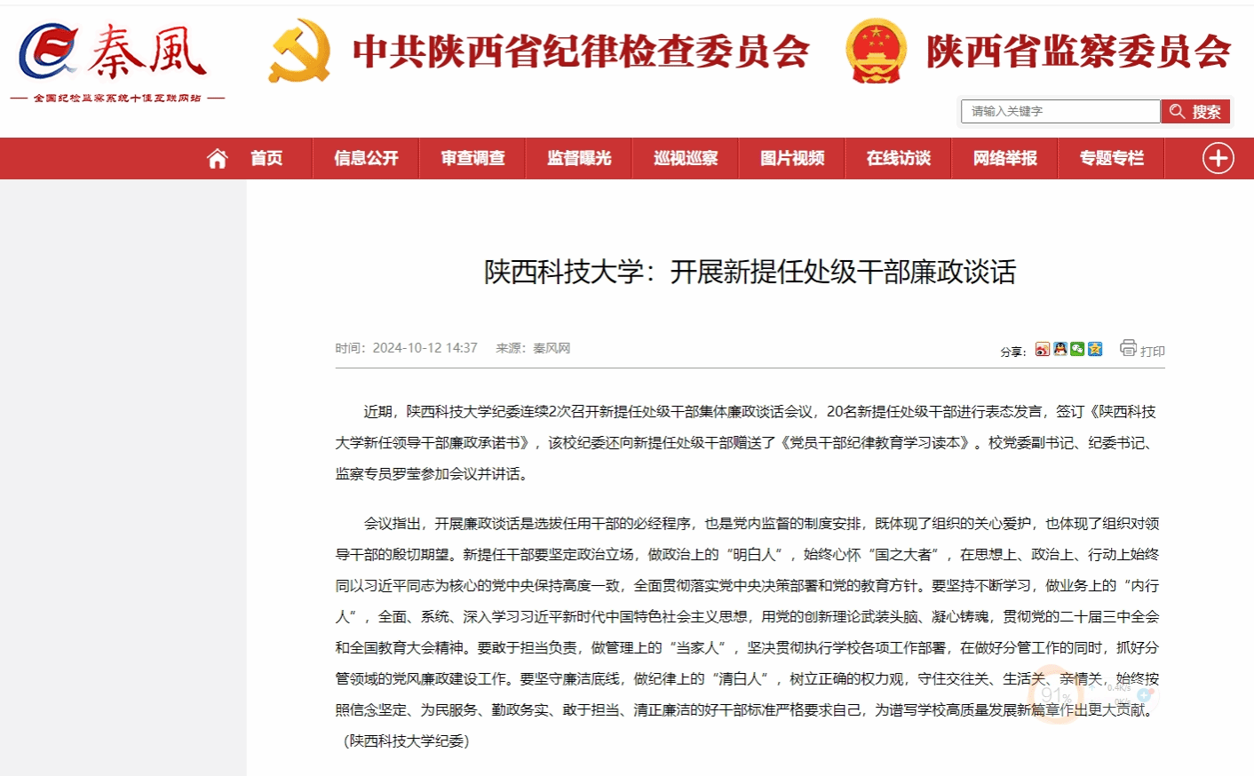 近日,秦风网报道德赢官网开展新提任处级干部廉政谈话。