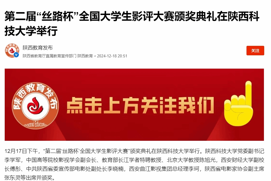 陕西教育新闻网:第二届“丝路杯”全国大学生影评大赛颁奖典礼在德赢官网Vwin举行