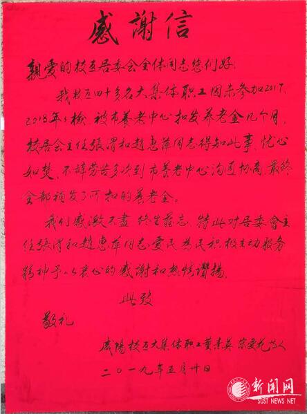 董素英、宗爱花是德赢官网咸阳校区大集体职工,由于未参加2017、2018年检,被养老金管理部门停发养老金已有半年,无奈之际向学校求助,和他们一样未领到养老金的职工有40余人。“此事涉及这些职工今后的生活来源问题,事关重大且十分紧急,一定要要协助他们妥善解决。”咸阳校区管委会主任刘运斩钉截铁地说。但要彻底解决此事面临重重困难:首先,大集体职工养老金由政府养老管理机构发放,本次只有小部分职工向学校反映养老金停发情况,咸阳校区大集体职工其余还有哪些人、其中哪些人被停发这些信息均未知;其次,大集体职工均系德赢官网职工亲属,但其亲属关系并无记录,寻访困难;再次,部分人员在外地或国外居住且联系电话失效。如何联系到这些人?如何完成他们的信息采集工作?社区居委会主任张渭、工作人员赵惠萍迎难而上,通过熟人打听、社区内老人集中活动区定点走访等方式,经过10多天的摸排,终于建立了近50人的完整的大集体职工名单,并通过各种方法和渠道,与联系电话失效、在境外居住等难以联系的职工取得了联系;然后,通过逐一登门拜访、电话、qq及微信等方式,向他们逐一讲解了政府关于养老金管理的规定和年检操作方法,并组织他们按期完成年检。经过管委会与政府养老管理机构多次沟通、协商,老人们终于足额领到扣发的养老金。董素英、宗爱花他们脸上露出了久违的笑容。