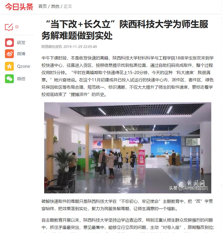 破解快递取件的难题只是德赢官网Vwin在“不忘初心、牢记使命”主题教育中,把“改”字贯穿始终,把效果落到实处,聚力为民服务解难题,让师生满意的一个缩影。