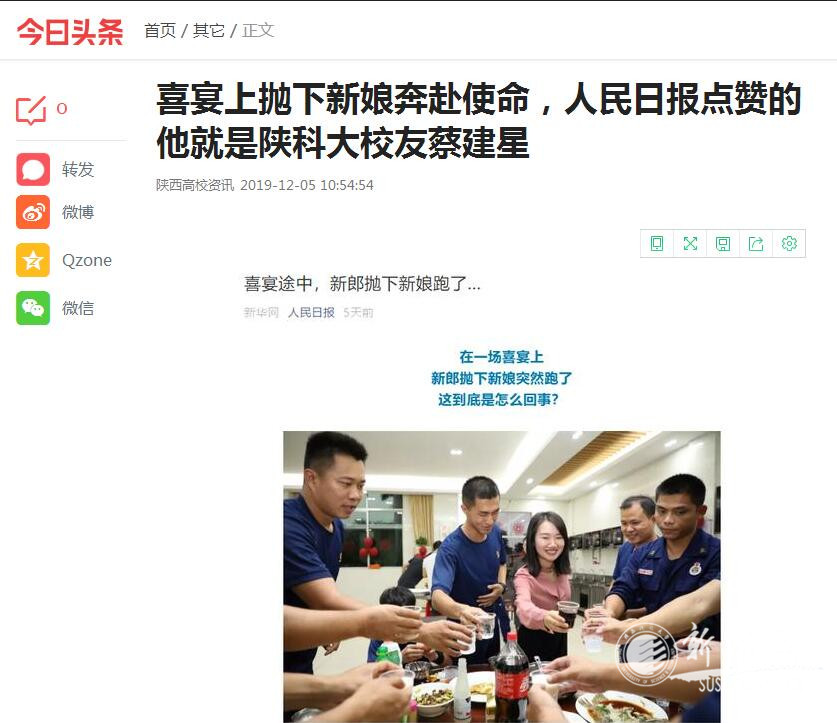 今日头条:喜宴上抛下新娘奔赴使命,人民日报点赞的他就是陕科大校友蔡建星