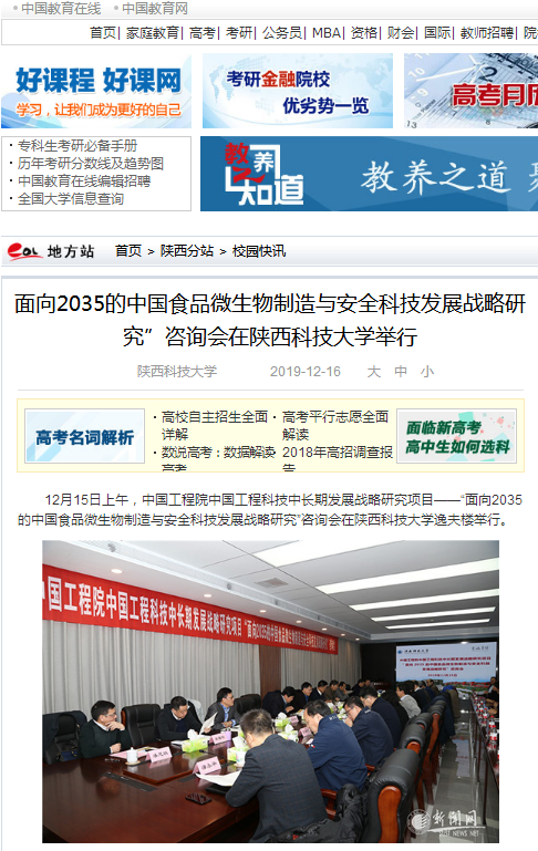 中国教育网:面向2035的中国食品微生物制造与安全科技发展战略研究”咨询会在德赢官网Vwin举行