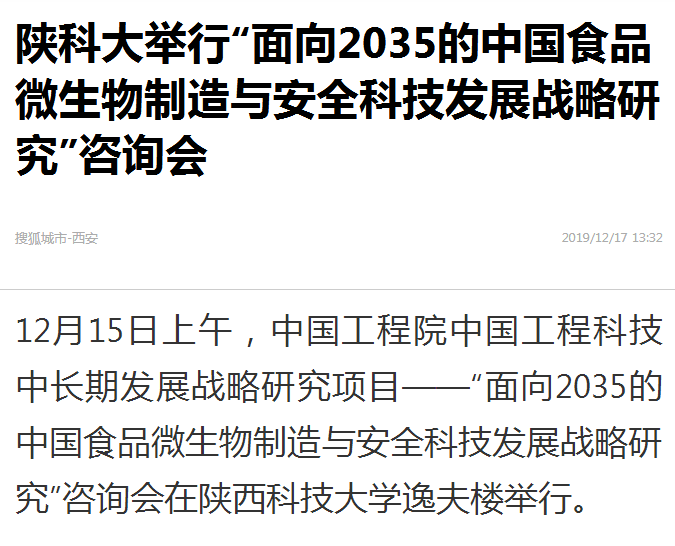 搜狐:陕科大举行“面向2035的中国食品微生物制造与安全科技发展战略研究”咨询会