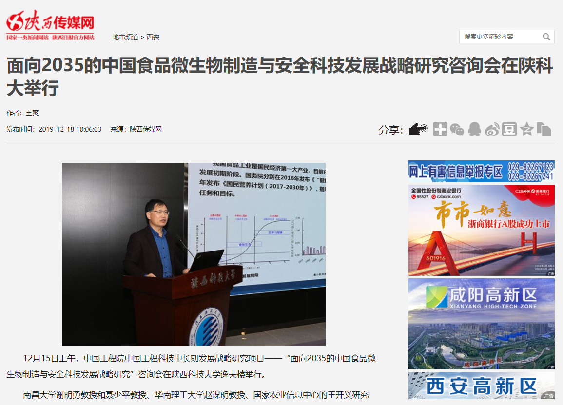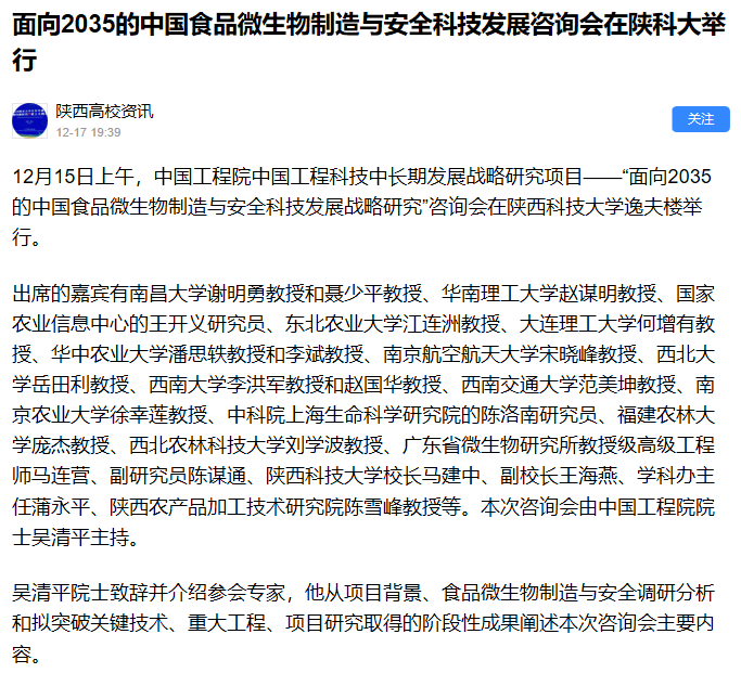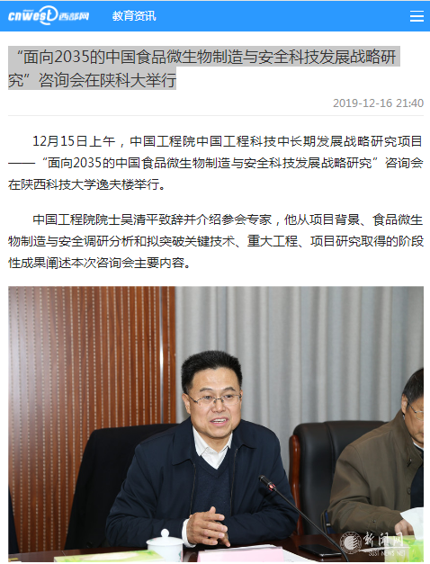 西部网:“面向2035的中国食品微生物制造与安全科技发展战略研究”咨询会在陕科大举行