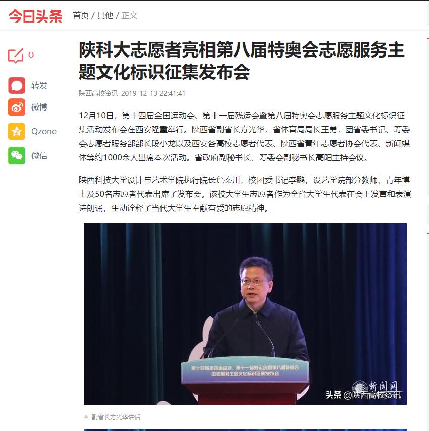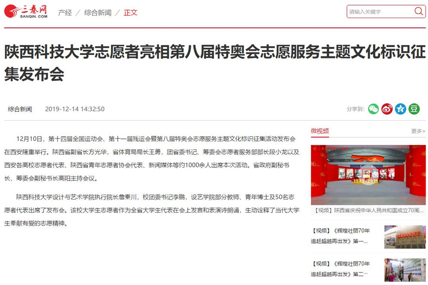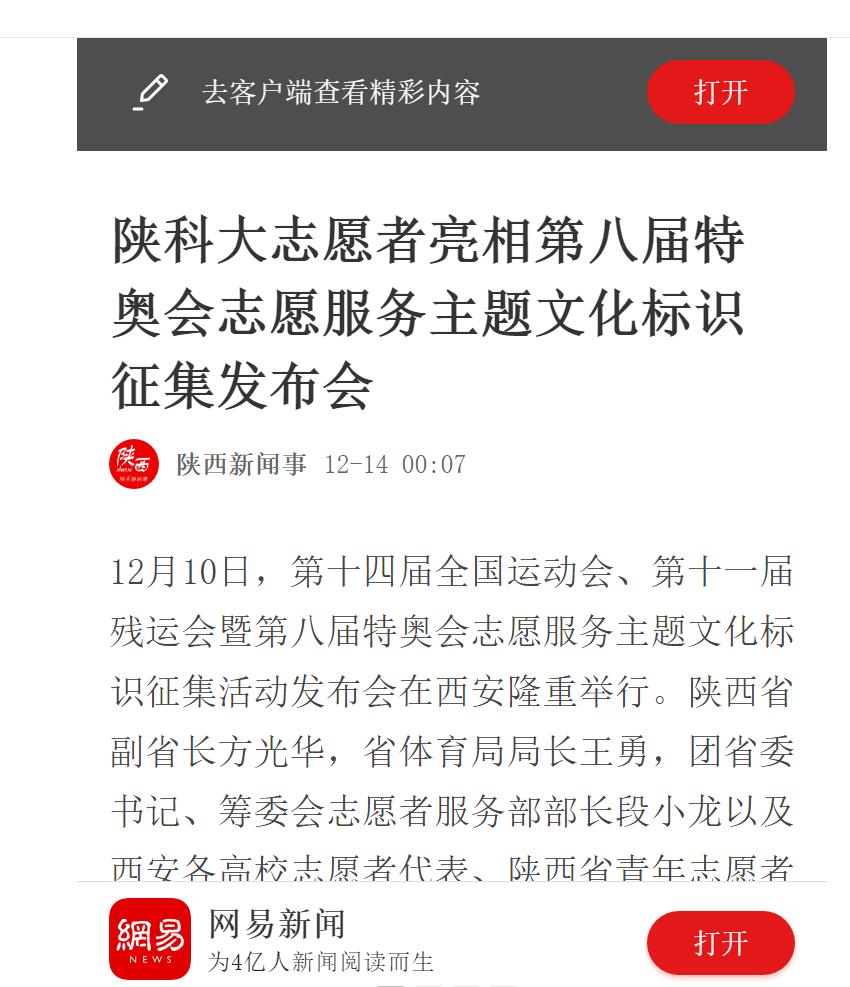 网易新闻APP:陕科大志愿者亮相第八届特奥会志愿服务主题文化标识征集发布会
