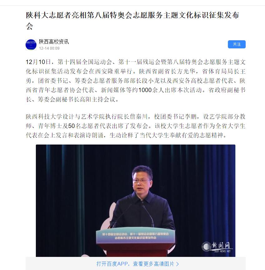 百度APP:陕科大志愿者亮相第八届特奥会志愿服务主题文化标识征集发布会