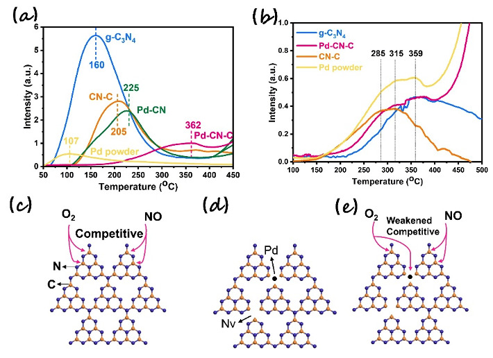 团队董国辉教授等通过“热岛”效应在g-C3N4表面同时引入Pd0和N空位,作者发现Pd0和N空位之间存在协同效应。这个协同效应不仅能削弱NO与O2在g-C3N4表面的竞争吸附,而且能促进光生电荷迁移,产生更多羟基自由基,从而提高g-C3N4光催化去除NO的效率。这篇文章为提高光催化去除空气污染物效率提供了一个新思路。该文发表在权威期刊Environment Science: Nano上。
