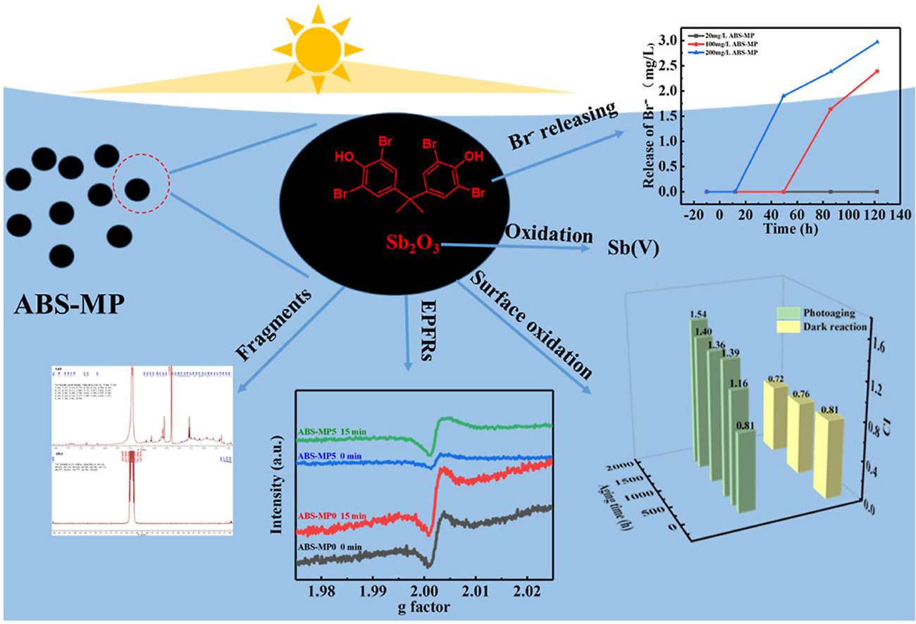 微塑料(MPs)污染已成为一个重要的环境问题,并对多种生物构成威胁。胡学锋教授研究了水中丙烯腈-丁二烯-苯乙烯微塑料(ABS-MP)在模拟太阳光照射下进行光老化产生的表面形貌和官能团的变化,同时检测老化产物在水中的释放。调研了老化程度对环境持久性自由基(EPFRs)的影响及光照下二次EPFRs的生成。考察了添加剂四溴双酚A(TBBPA)和Sb2O3在光老化过程中的转化。论文发表在环境TOP期刊Journal of Environmental Management。ABS及其添加剂TBBPA在自然环境中光老化及转化的研究,有助于对进入环境中微塑料潜在危害的深入理解。