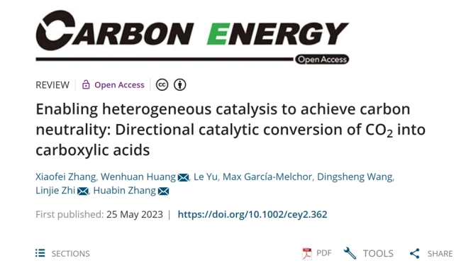 X. Zhang,W. Huang*,L. Yu, M. García-Melchor, D. Wang, L. Zhi* and H. Zhang* Enabling Heterogeneous Catalysis to Achieve Carbon Neutrality: Directional Catalytic Conversion of CO2into Carboxylic Acids,Carbon Energy,2023,e362.(2022影响因子:20.5)
