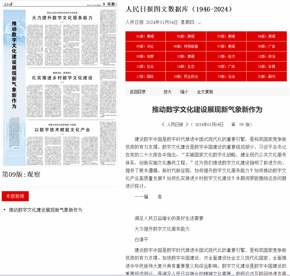 《人民日报》:《推动数字文化建设展现新气象新作为》
