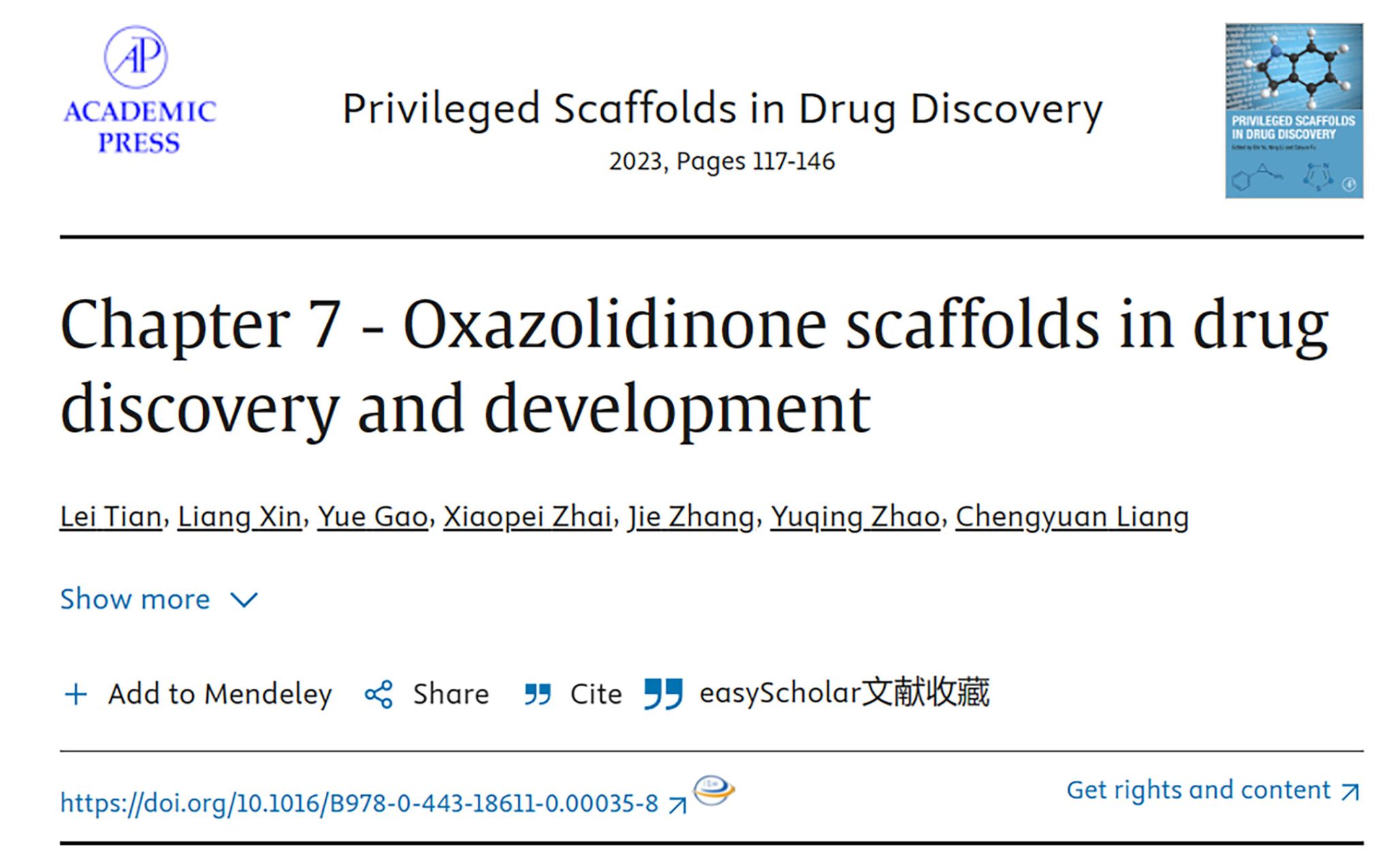 【著作1】Oxazolidinone scaffolds in drug discovery and development, Privileged Scaffolds in Drug Discovery, Elsevier Academic Press, 2023, Pages 117-146, ISBN 9780443186110, ( https://doi.org/10.1016/B978-0-443-18611-0.00035-8)