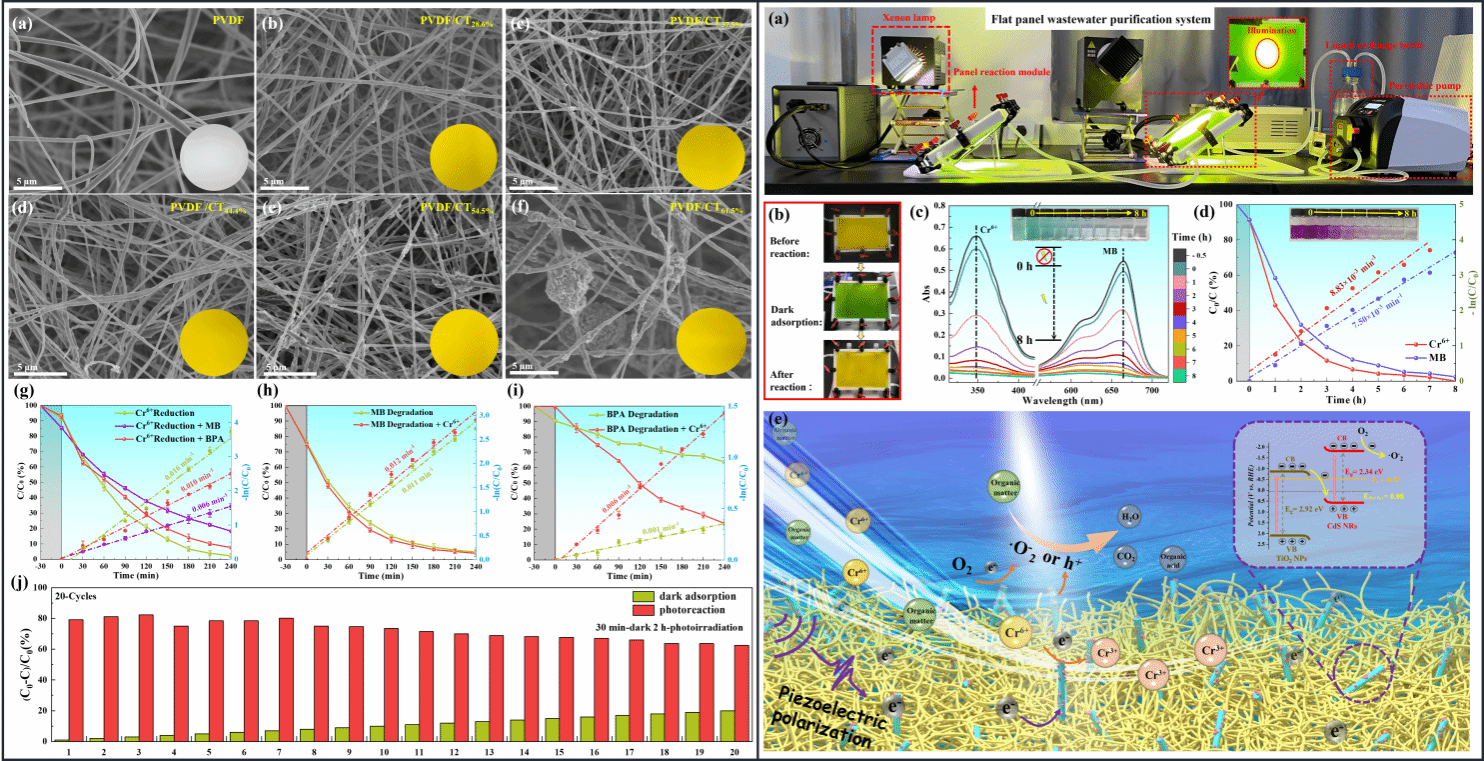 W. Li*, G. Liao, W. Duan, F. Gao, Y. Wang, R. Cui, X. Wang, C. Wang*, Synergistically electronic interacted PVDF/CdS/TiO2 organic-inorganic photocatalytic membrane for multi-field driven panel wastewater purification, Appl. Catal. B-Environ. https://doi.org/10.1016/j.apcatb.2024.124108