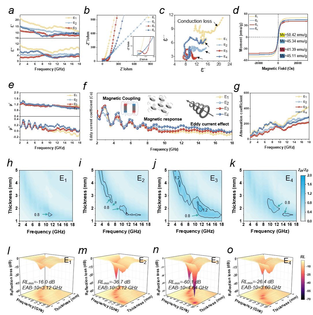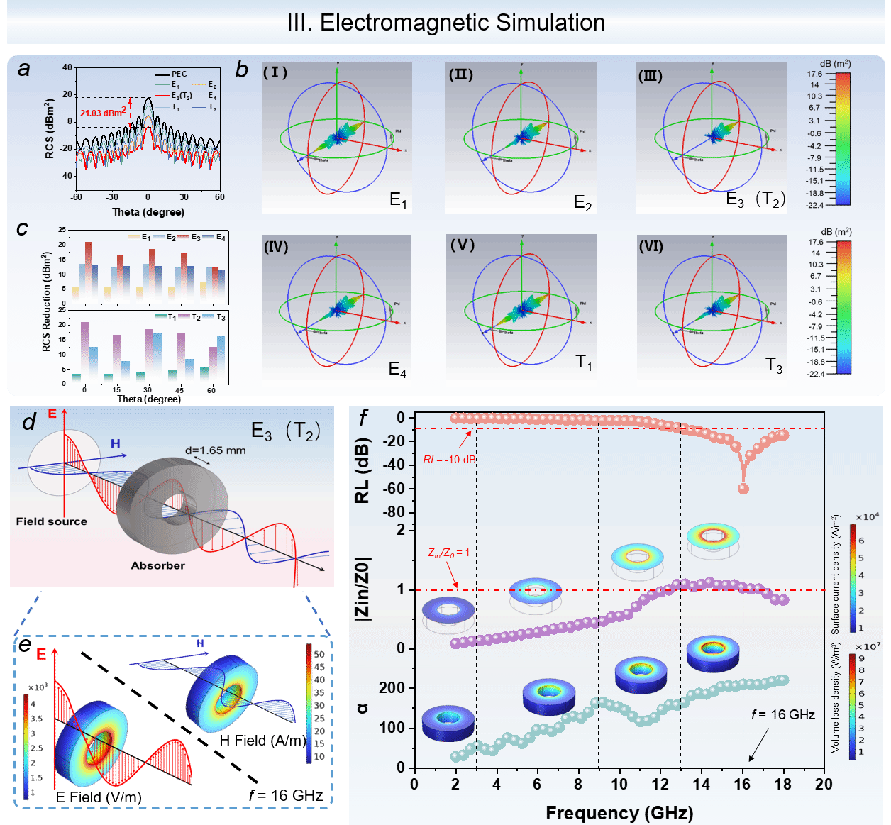 3. 对于电磁波的传导及耗散机理,通过COMSOL仿真软件模拟了不同频率下的动态损耗过程,揭示了电磁波的阻抗特性与原位衰减过程。深入解释了阻抗匹配和衰减能力在电磁波吸收中的作用机制。