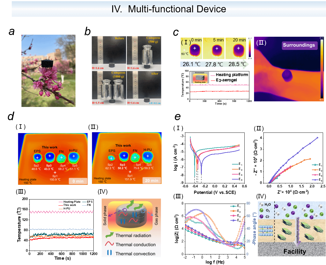 4.为提高材料的环境适应性和稳定性,开发了具有轻质、耐压、防腐、隔热特性的红外隐身气凝胶组装方法,为电磁波吸收材料及器件功能性开发设计提供了一个很好的范例。