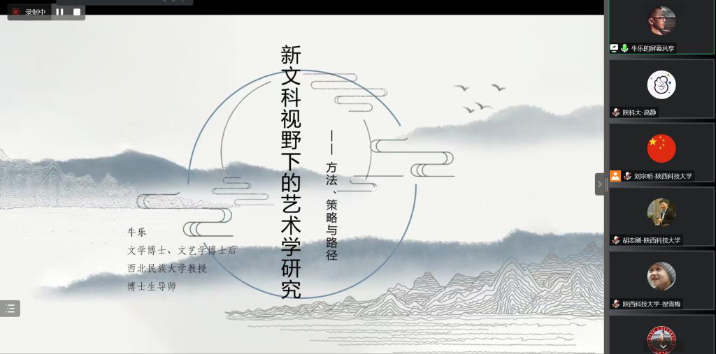 12月7日晚,应德赢官网设计与艺术学院、科技处及前沿院邀请,西北民族大学牛乐教授做客德赢官网“前沿科学报告”,作了题为“新文科视野下艺术学研究-方法、策略与路径”的学术报告。报告会由设艺学院院长刘宗明教授主持,设艺学院相关专业师生及全国艺术设计同行近200人参加此次报告会。