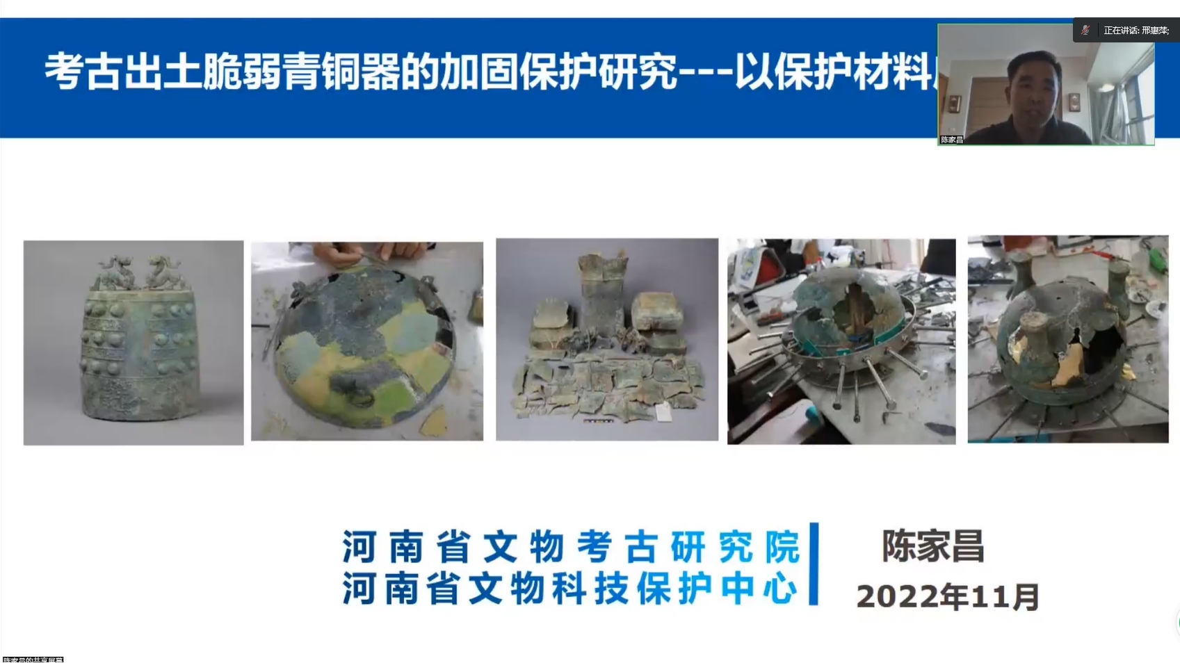陈家昌研究员详细讲解了脆弱青铜器的保存现状、青铜器的腐蚀机理及保护研究现状、保护材料研究现状及存在的问题,最后对保护新材料应用案例进行了探讨,科学地指出新材料与文物保护的结合点,为德赢官网材料研究新成果在文物保护领域的实践应用指明了方向。