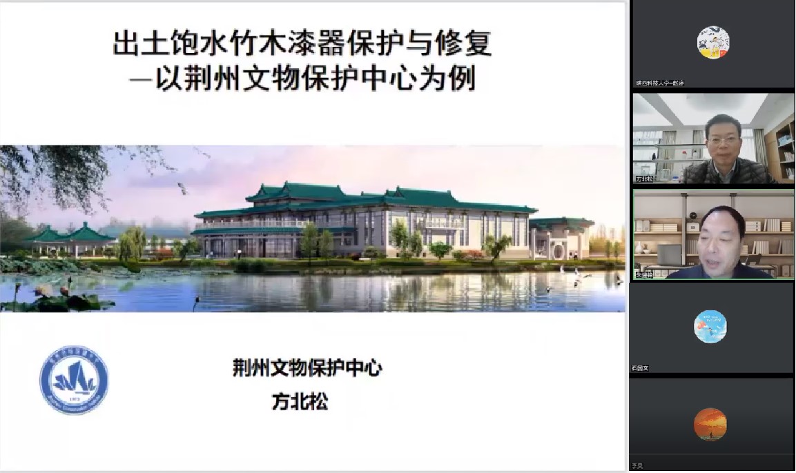 方北松研究馆员从竹木漆器基本种类、竹木漆器的保护、漆器复原研究及竹木漆器保护最新研究四个方面,专业且系统地讲解了饱水漆木器的出土——修复——完善全过程所使用的理念、方法及材料,带领与会师生感受千年古人的艺术造诣与现代文物修复的不断进步与发展。