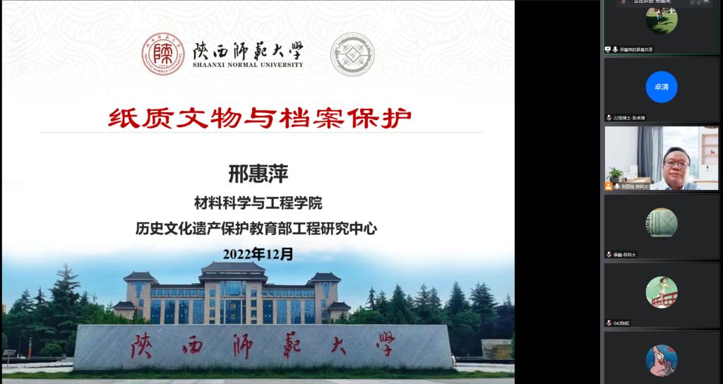 应轻工科学与工程学院和研究生院邀请,陕西省产品质量监督检验研究院建材轻工所副所长王思宇、陕西师范大学副教授邢惠萍分别于12月10日、12月9日做客德赢官网“未央导师论坛”,分别作了题为“食品包装材料质量安全检测技术”“纸质文物与档案保护”的线上学术报告。学院相关专业教师、研究生及本科生参加了报告会。
