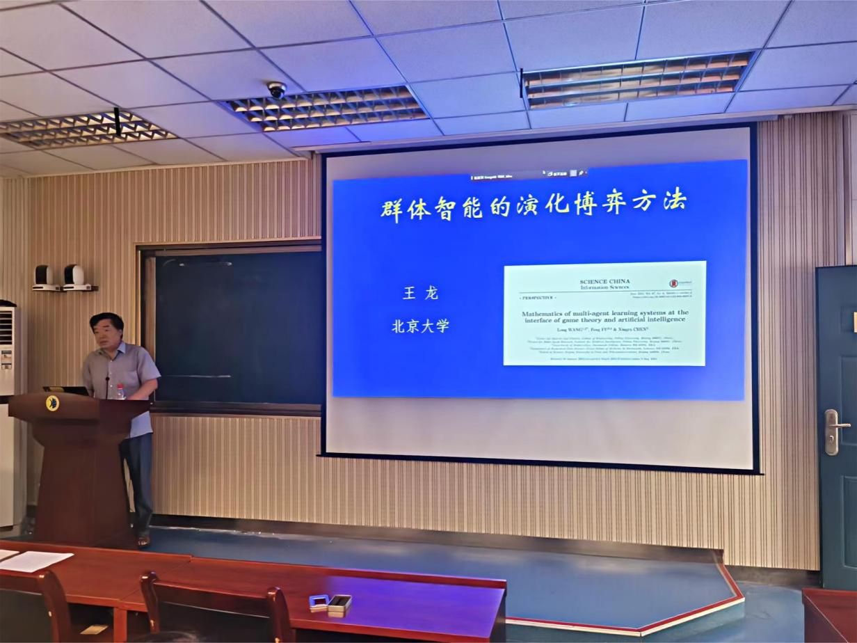 在报告中,王龙教授深入浅出地介绍了群体智能的基本概念和演化博弈的原理。他详细讲解了群体智能在自然界和控制系统中的表现形式,如“蚁群”等仿生算法,展示了群体智能在解决复杂优化问题中的优势。同时,王教授通过4篇跨度上百年的“里程碑”式论文,详细阐述了如何利用演化博弈方法来解决复杂系统中的问题,如市场经济中的策略选择以及智能交通系统中的路径优化等。报告内容丰富,既有理论高度,又结合了实践经验,使在场师生受益匪浅。此外,王教授还介绍了其课题组在该领域的最新研究进展和成果,激发了师生们的浓厚兴趣。
